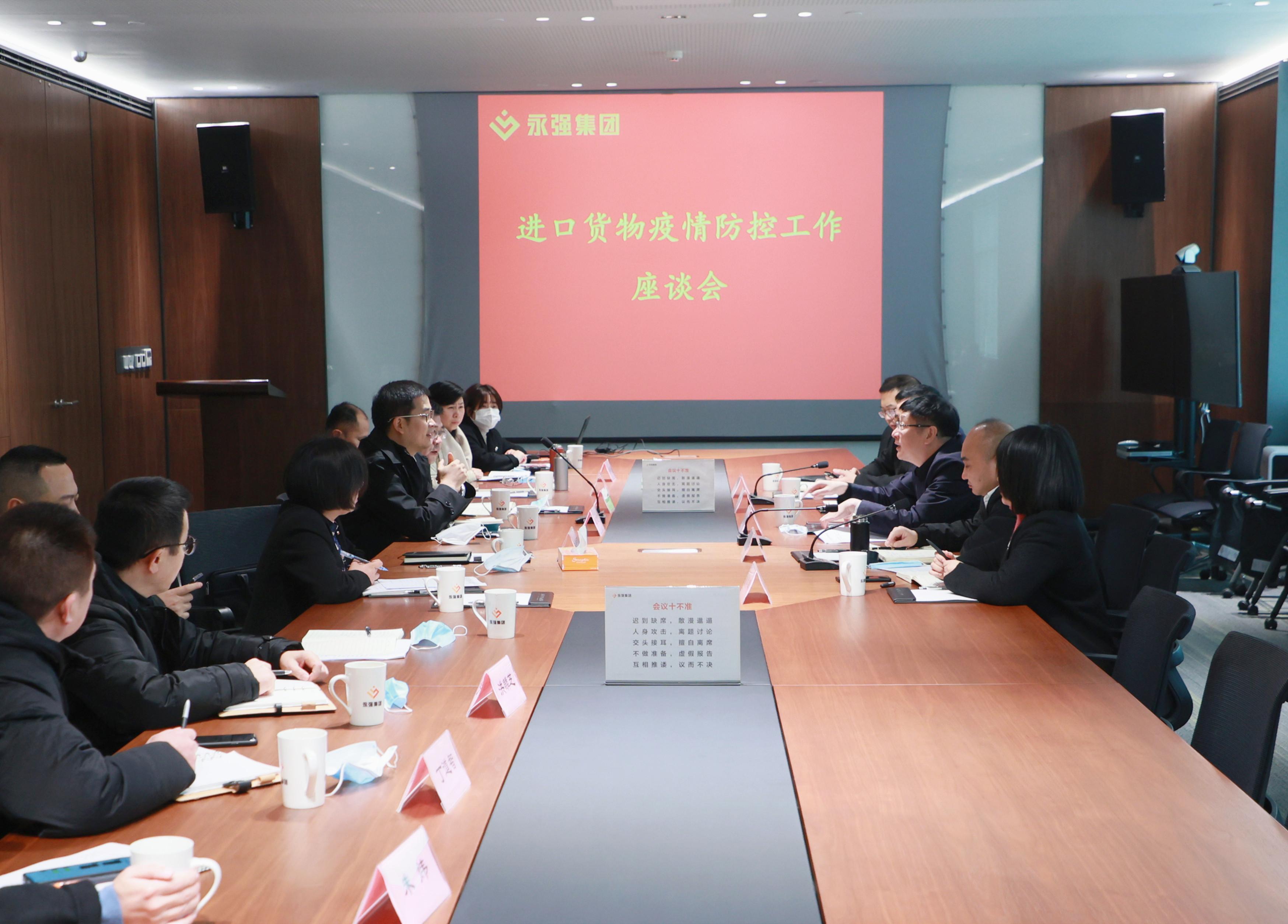座談會(huì)上,謝建強(qiáng)向沈云才一行對(duì)企業(yè)疫情防控工作的指導(dǎo)、關(guān)心和幫助表示誠(chéng)摯的感謝,并就集團(tuán)進(jìn)口貨物的相關(guān)情況作簡(jiǎn)要匯報(bào)。他表示,當(dāng)前新冠肺炎疫情防控形勢(shì)嚴(yán)峻,企業(yè)要牢固樹立“疫情就在身邊、風(fēng)險(xiǎn)就在身邊”的風(fēng)險(xiǎn)憂患意識(shí),嚴(yán)格按照上級(jí)部門要求落實(shí)疫情防控管理工作,確保防疫生產(chǎn)兩不誤。對(duì)于企業(yè)涉外進(jìn)口物料,公司相關(guān)部門要進(jìn)一步做好信息核實(shí)、物品消毒,切實(shí)保障員工生命健康安全。
